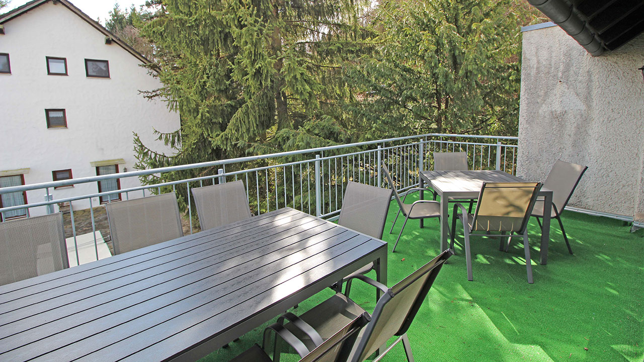 Der große Balkon bietet Ihnen neben einer herrlichen Aussicht auch einen Holzkohle-Grill und einen großen Tisch mit Stühlen und lädt zum Verweilen und Genießen ein.